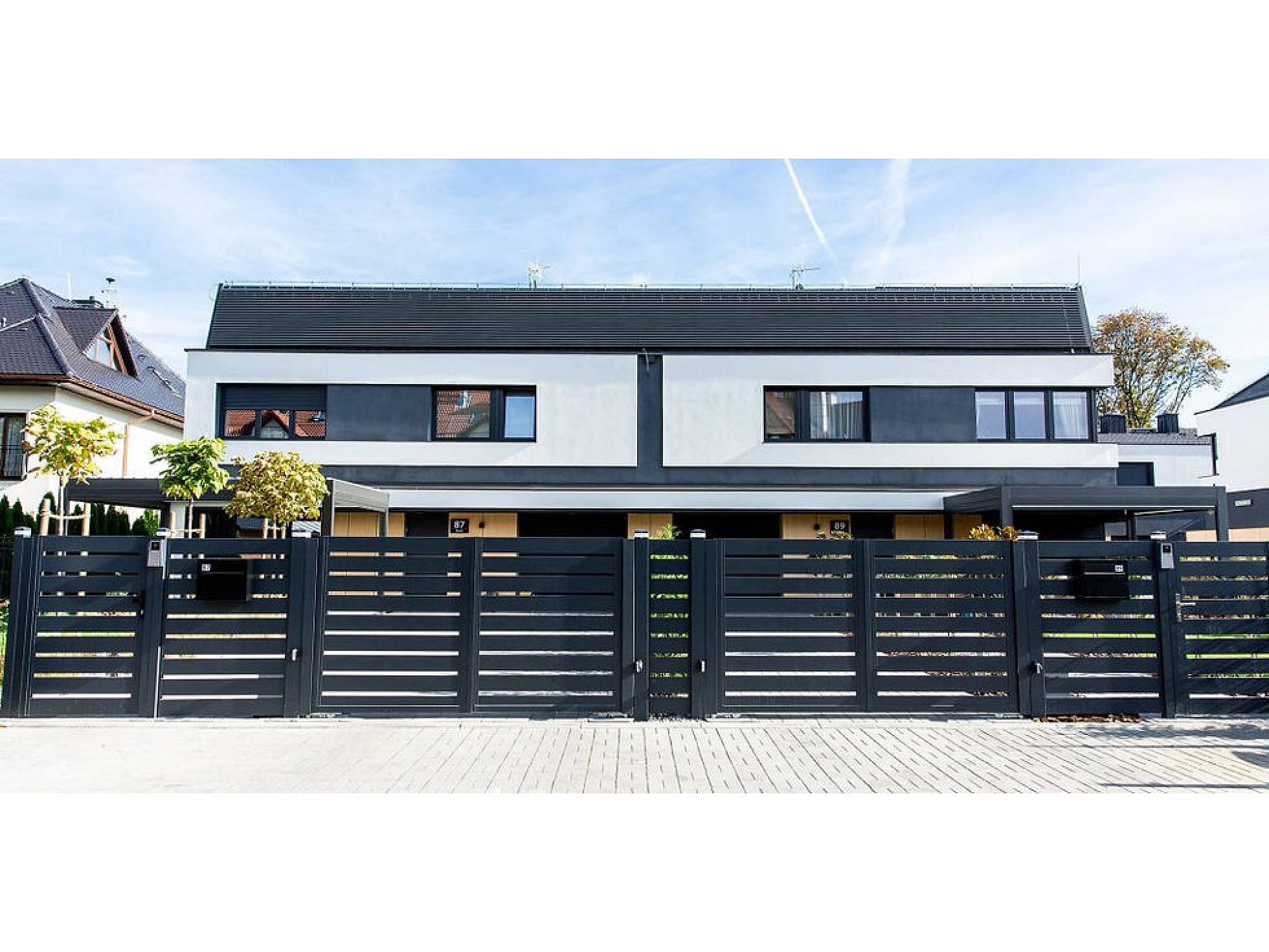 Funkcionāls un drošs metāla žogs dzīvojamo ēku kompleksā